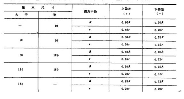 5、鍛造圓角公差,鍛件內(nèi)圓角R、外圓角r未注公差參照下表執(zhí)行